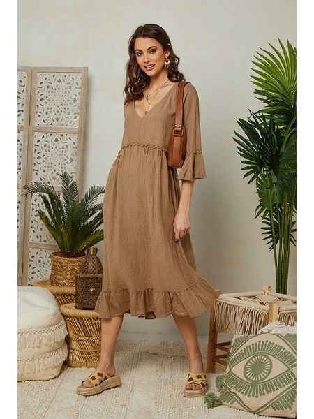 Lin Passion Lniana sukienka w kolorze karmelowym rozmiar: 34/36