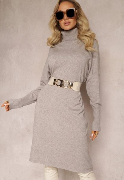 Jasnoszara Sweterkowa Sukienka z Golfem i Wiskozą o Pudełkowym Kroju Alirinna