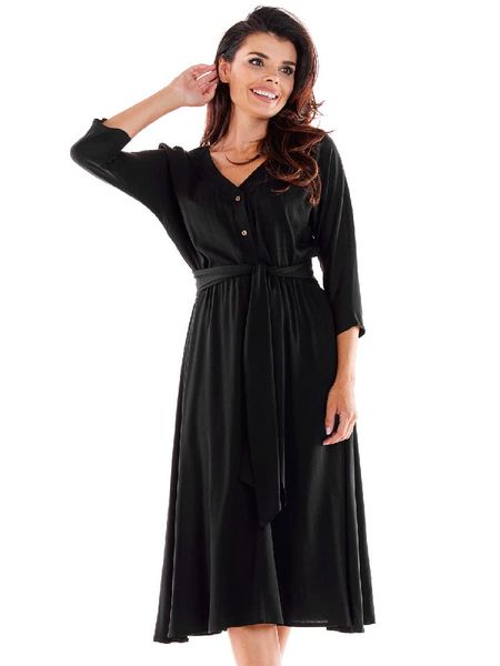 – dekolt: V- zapięcie: skrócona listwa guzikowa- długość rękawa: 3/4- w talii wiązanie: tak – krój: litera A- look: jednokolorowy