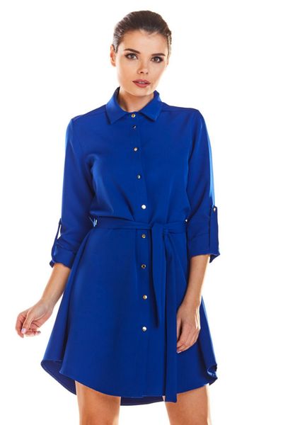 Sukienka koszulowa szmizjerka z paskiem i kołnierzykiem niebieska