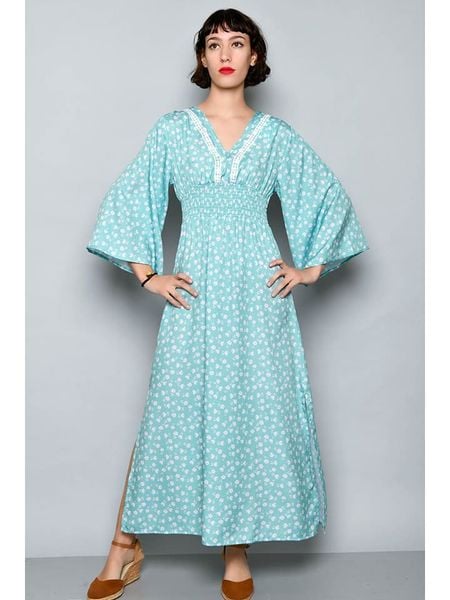 – dekolt: V- krój rękawów: motylek- krój: rozkloszowany- wzór: na całości