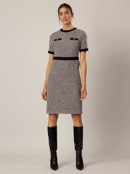 – dekolt: okrągły- zapięcie: suwak na plecach- dolny brzeg: z rozcięciem- detale: ozdobne kieszonki- krój: wąski- wzór: melanżowy