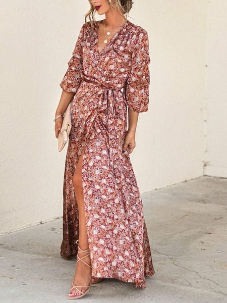 – dekolt: V- krój rękawów: rozszerzany do dołu- długość rękawa: półdługi- w talii wiązanie: tak- dolny brzeg: z rozcięciem- krój: luźny- wzór: kwiatowy
