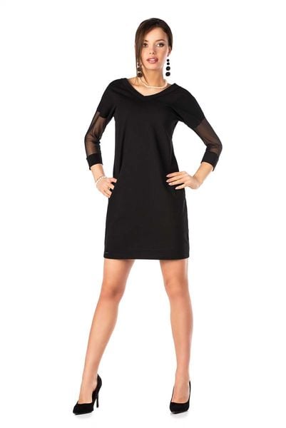 Czarna Dopasowana Sukienka z Transparentnym Rękawem 3/4