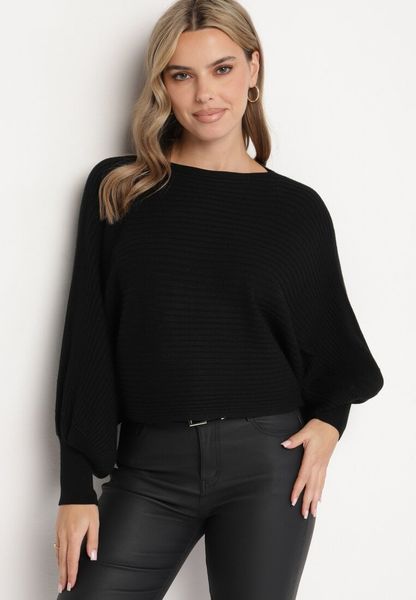 Czarny Sweter z Wiskozą Typu Nietoperz Sallindria