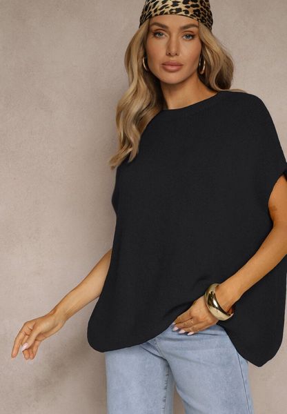 Czarny Sweter z Bawełną w Stylu Nietoperza Nilariella