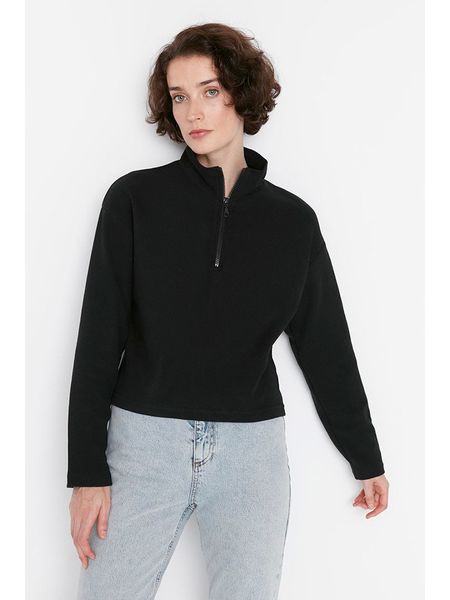 – z dodatkiem bawełny- kołnierz: stójka- zapięcie: krótki zamek błyskawiczny- krój: prosty- look: jednokolorowy, prążkowany