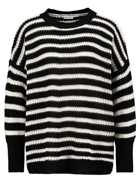– dekolt: okrągły- dolny brzeg: z rozcięciem- wzór splotu: ścisły- krój: oversized- wzór: paski