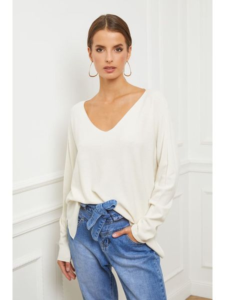 – z dodatkiem kaszmiru- dekolt: V- krój rękawów: nietoperz- dolny brzeg: z rozcięciem- krój: oversized- look: jednokolorowy