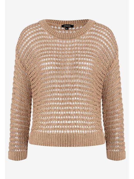 – z dodatkiem lnu- dekolt: okrągły- ściągacz: dekolt, zakończenia rękawów, dolny brzeg- krój: prosty- wzór: dziurkowany- wykończenie: delikatnie prześwitujące