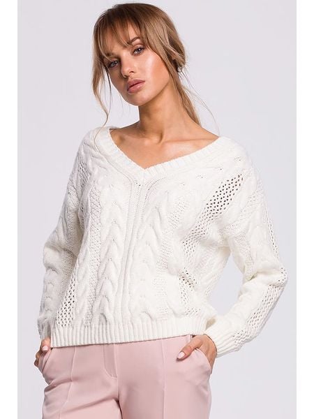 – dekolt: V- ściągacz: dekolt, zakończenia rękawów, dolny brzeg- krój: prosty- look: jednokolorowy- wzór splotu: warkocz