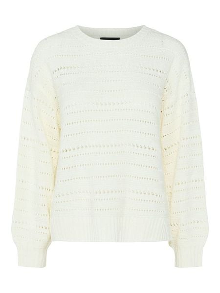 – dekolt: okrągły- rękaw: bufiasty- ściągacz: dekolt, zakończenia rękawów, dolny brzeg- krój: luźny- wzór: dziurkowany