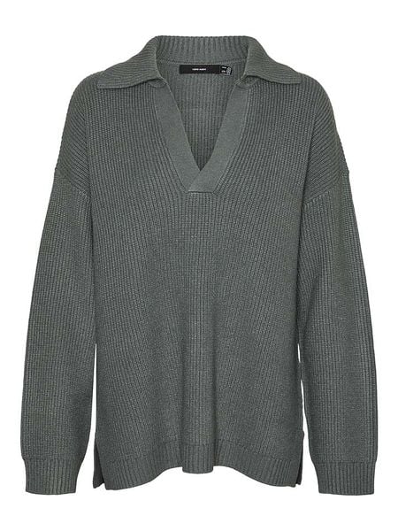 – dekolt: V- kołnierz: kent- ściągacz: kołnierz, zakończenia rękawów, dolny brzeg- wzór splotu: luźny- dolny brzeg: z rozcięciem- krój: luźny- look: jednokolorowy