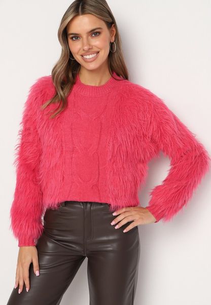 Fuksjowy Sweter z Długim Włosiem i Dodatkiem Wełny Merithina