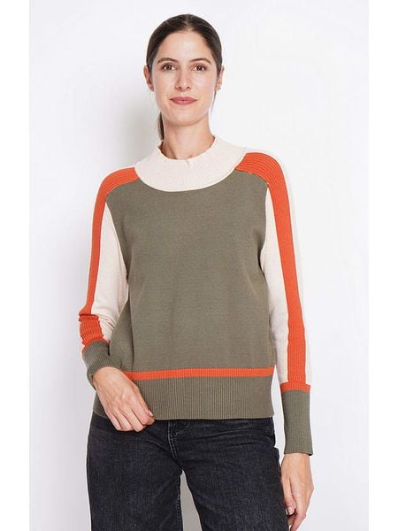 ASSUILI Sweter w kolorze oliwkowo-biało-pomarańczowym rozmiar: 40