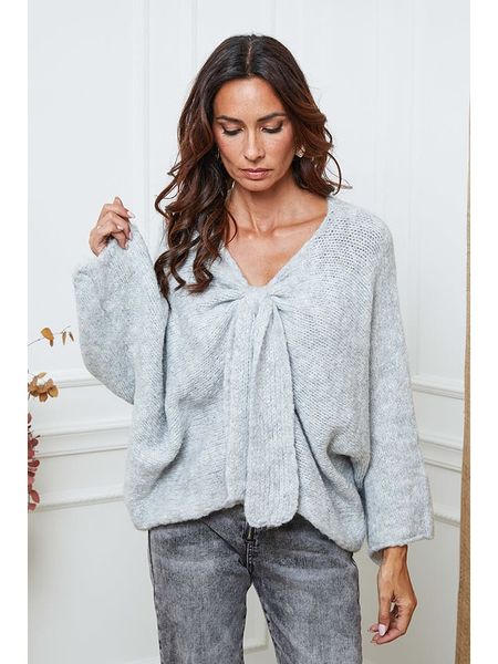 – z dodatkiem wełny- dekolt: okrągły- krój rękawów: rozszerzany do dołu- detale: ozdobne wiązanie- krój: luźny- look: jednokolorowy- wzór splotu: luźny