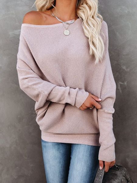 – dekolt: łódka- krój rękawów: nietoperz- krój: prosty- look: jednokolorowy