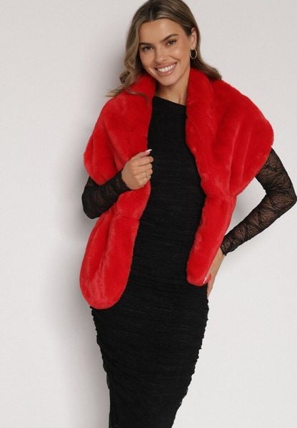 Czerwone Futrzane Ponczo Narzutka Bralinne