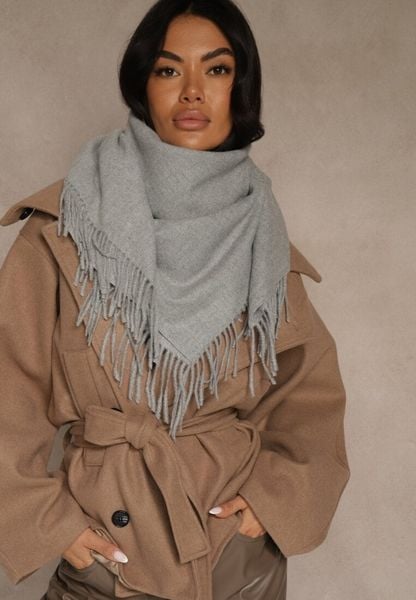 Szary Bawełniano-Wiskozowy Szalik w Kształcie Trójkąta z Frędzlami Vetisara