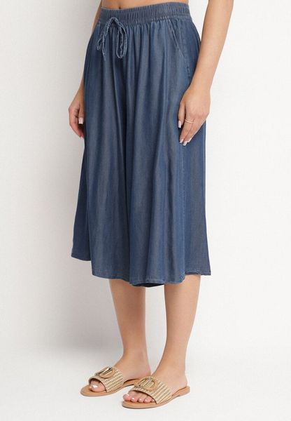 Niebieskie Bawełniane Szorty Bermudy o Szerokim Kroju z Ozdobnym Wiązaniem Falpio