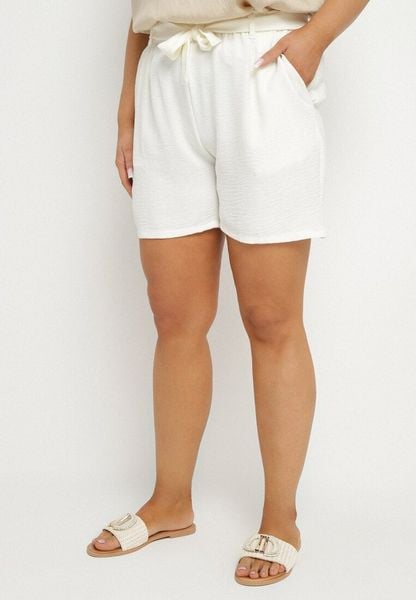 Jasnobeżowe Szorty Typu Bermudy z Wysokim Stanem z Gumką w Pasie i Wiązaniem Seviiana