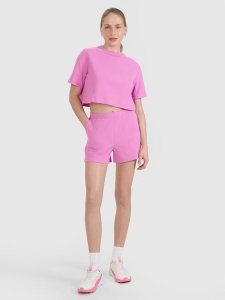 4F Spodenki dresowe z waflowej dzianiny damskie – różowe XL