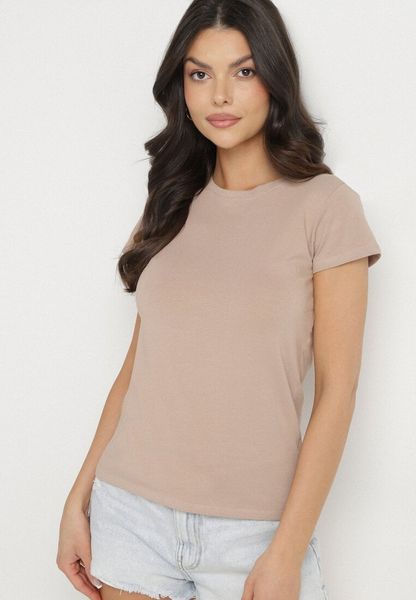 Jasnobeżowy Bawełniany Klasyczny T-shirt Lunolia