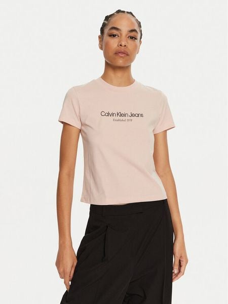 Calvin Klein Jeans T-Shirt Placed Institutional J20J225524 Różowy Slim Fit