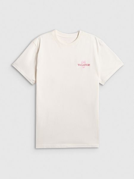 4F T-shirt loose z nadrukiem damski – beżowy S