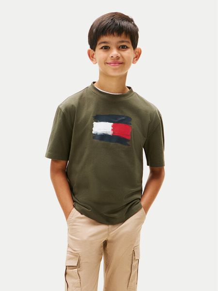 Tommy Hilfiger T-Shirt Script Flag KB0KB09725 Zielony Regular Fit