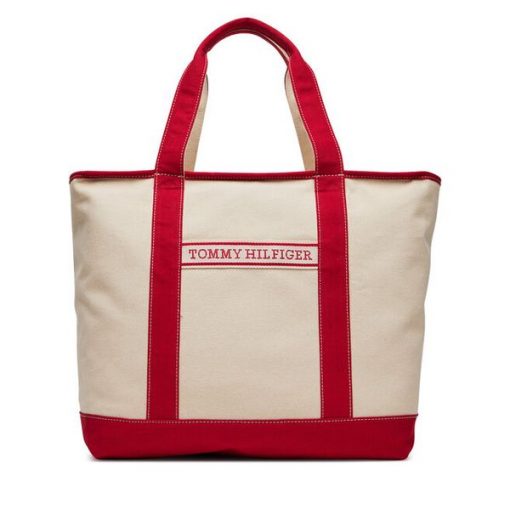 Torebka Tommy Hilfiger Th Summer Canvas Tote AW0AW17421 Beżowy