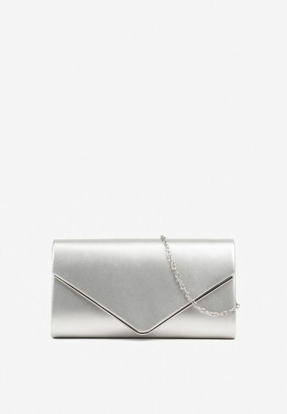 Srebrna Torebka Kopertówka Zdobiona Metalowym Detalem z Dodatkowym Łańcuszkiem Vorinna