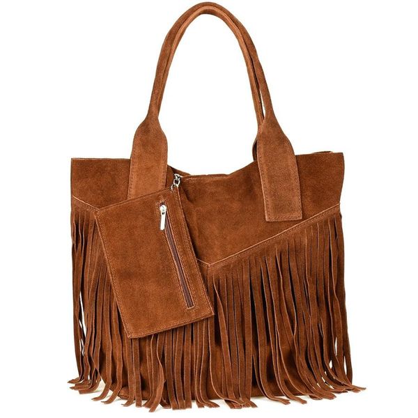 Shopperka boho skórzana VERA PELLE L83 koniakowa