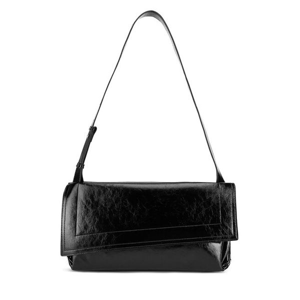 Czarna Brokatowa Torebka Typu Kopertówka Ozdobiona Tłoczeniem Talafena