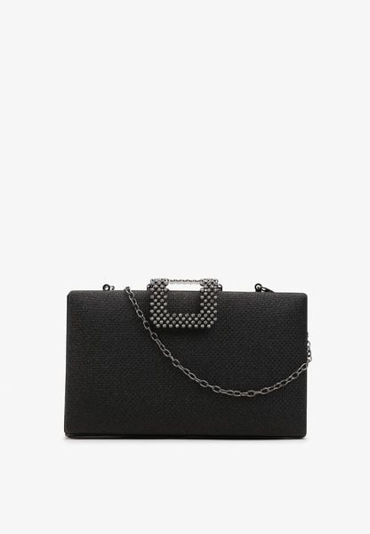 Czarna Torebka Kopertówka z Biżuteryjną Klamrą i Odpinanym Łańcuszkiem Fesovella