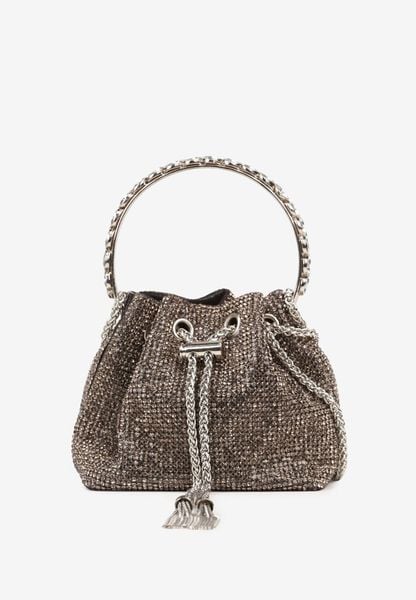 Złoto-Szara Wieczorowa Cyrkoniowa Torebka Vices Worek Ozdobiona Frędzlami Devrisa