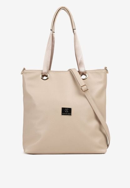 Beżowa Torebka Typu Shopperka Ozdobiona Metalicznymi Aplikacjami Gonevia