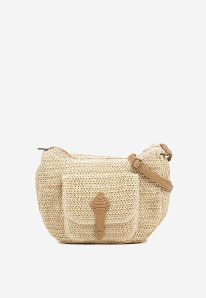 Beżowa Torebka z Plecionki Ozdobiona Kieszonką Sadinele
