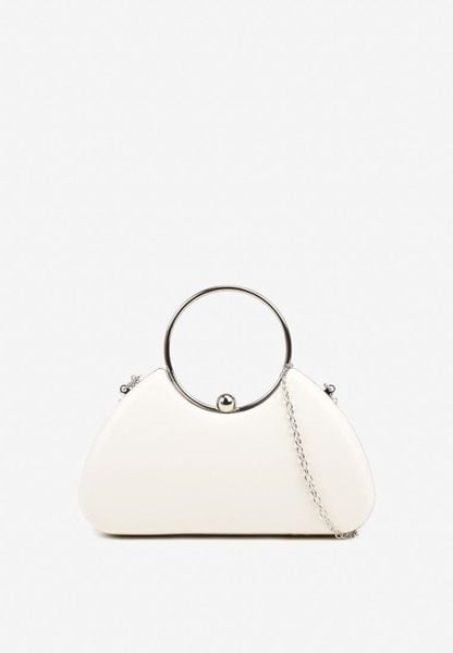 Biała Torebka Kopertówka z Metaliczną Ozdobą z Łańcuszkiem i Uchwytem Zarienna