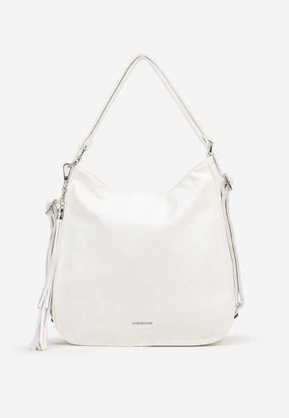 Biała Torebka na Ramię z Brelokiem z Frędzlami Helkio