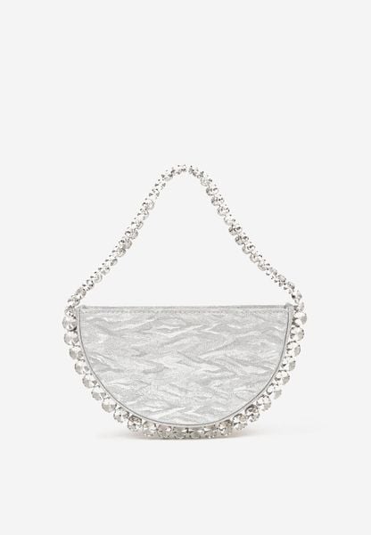 Srebrna Torebka Wieczorowa Vices z Łańcuszkiem i Rączką Zdobiona Cyrkoniami Amonne