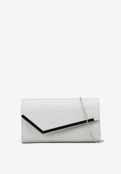 Srebrna Torebka Kopertówka Zdobiona Metalowym Detalem z Dodatkowym Łańcuszkiem Vorinna