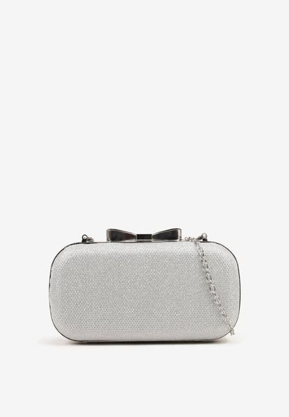 Srebrna Torebka Kopertówka z Metaliczną Nicią i Dodatkowym Łańcuszkiem Beriora