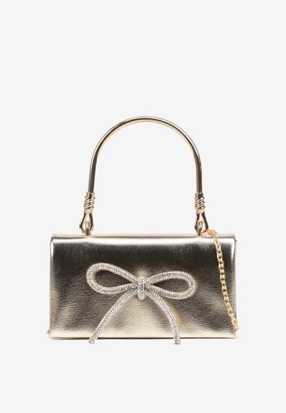 Złota Koktajlowa Cyrkoniowa Torebka z Łańcuszkiem i Uchwytem Latavea