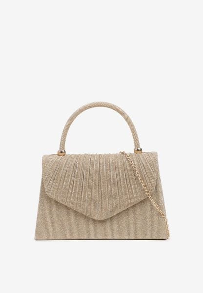 Złota Torebka Kopertówka Ozdobiona Metalicznymi Aplikacjami Zarilita