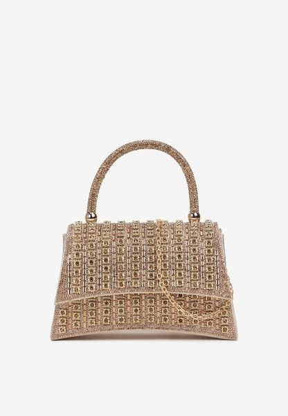 Złota Mała Torebka na Ramię z Rączką i Łańcuszkiem Ozdobiona Cyrkoniami na Magnes Xenatia
