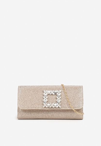 Szampańska Torebka Kopertówka z Łańcuszkiem i Aplikacją w Kształcie Klamry Ahenli