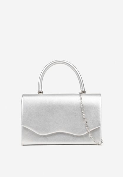 Srebrna Wieczorowa Torebka o Prostokątnym Kształcie z Rączką i Klapą Zarissae