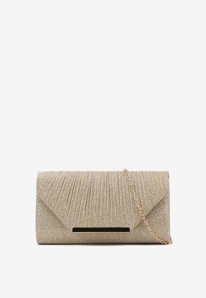 Złota Torebka Kopertówka z Połyskiem z Dodatkowym Łańcuszkiem Senielis