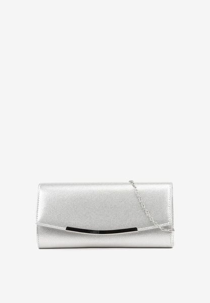 Srebrna Metaliczna Torebka Kopertówka z Łańcuszkiem i Asymetryczną Klapą Floreve